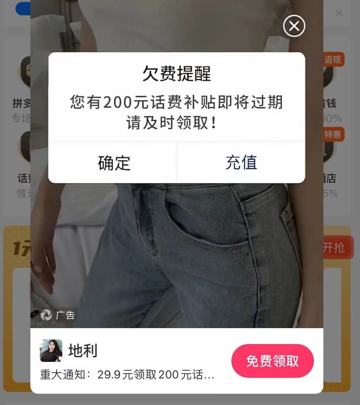 伪装为欠费提醒的广告