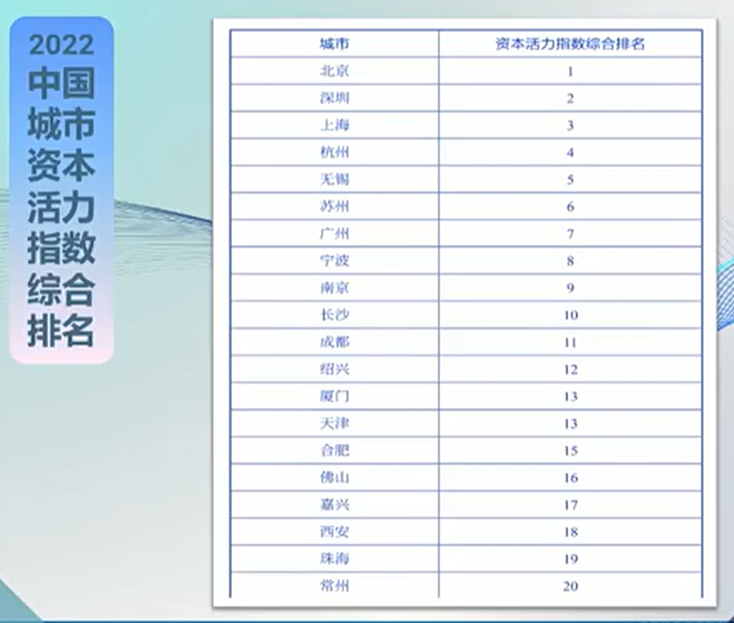 此外,2022中国城市资本活力指数的综合排名,也为“强城”提供了一个佐证。可以发现,资本活力指数领先的北京、深圳、上海、杭州、无锡、苏州、广州、宁波、南京、长沙,这前十座城市与“强城”们也有不谋而合之处。作为指数研制者,上海交大安泰经济与管理学院博士生导师夏立军教授表示,一个城市的竞争力很大程度上体现在其资本活力上,研究资本市场、用好资本市场,充分发挥好资本市场的作用,实现科技产业与资本市场在城市层面的良性循环,正是城市竞争力的关键。