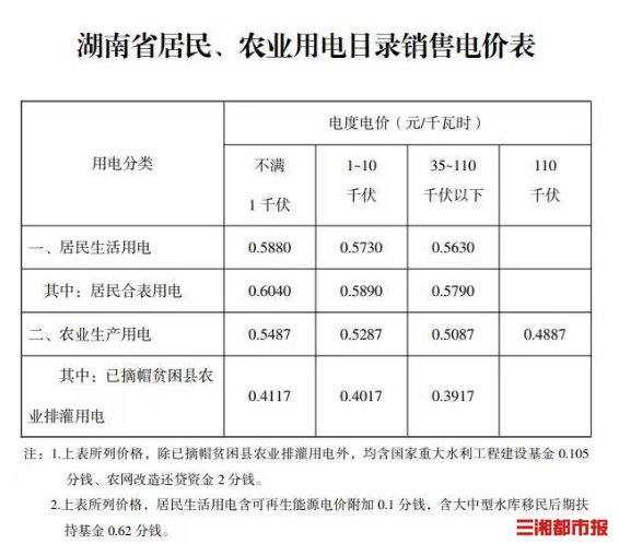 《通知》指出,湖南省用户用电价格归并为居民生活、农业生产及工商业用电。居民生活和农业生产用电价格不变,仍按现行标准执行。