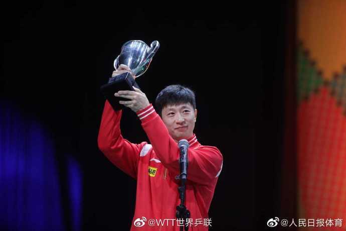 世乒赛男单三连冠马龙获颁圣·勃莱德复制杯