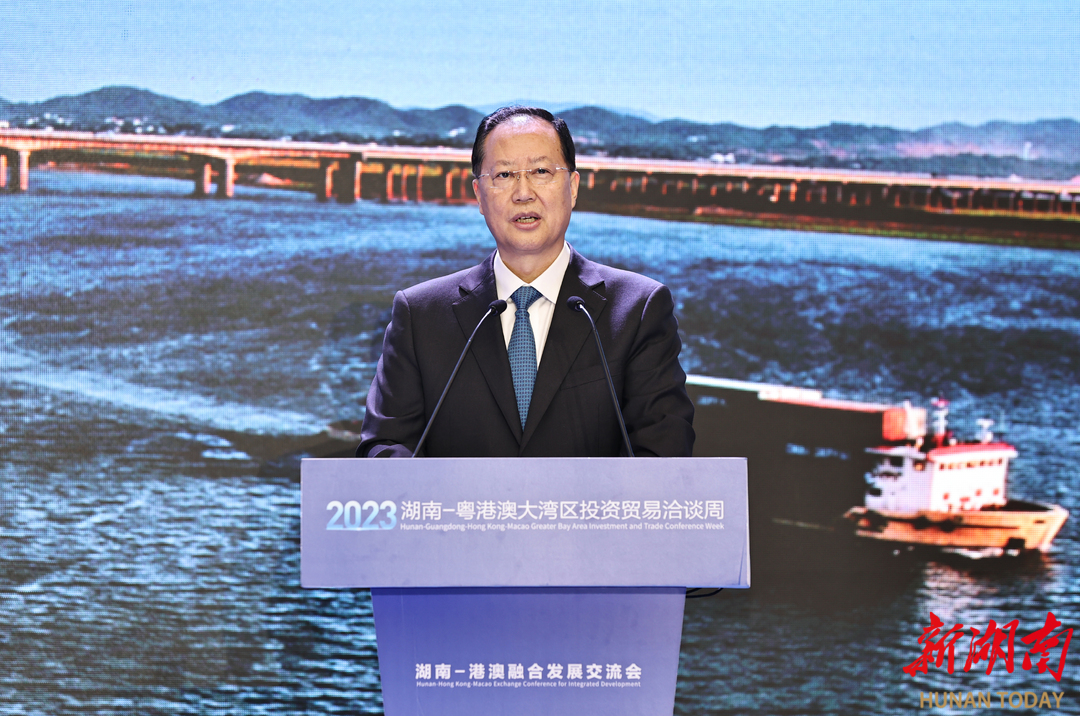 (5月30日上午,省委副书记、省长毛伟明在香港出席湖南—港澳融合发展交流会并致辞。)
