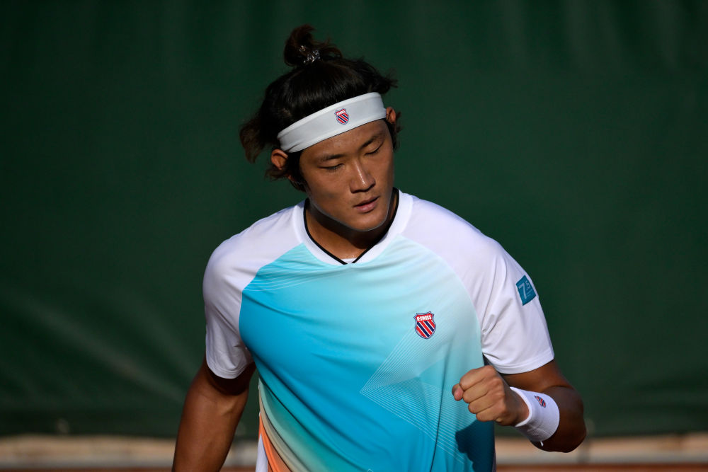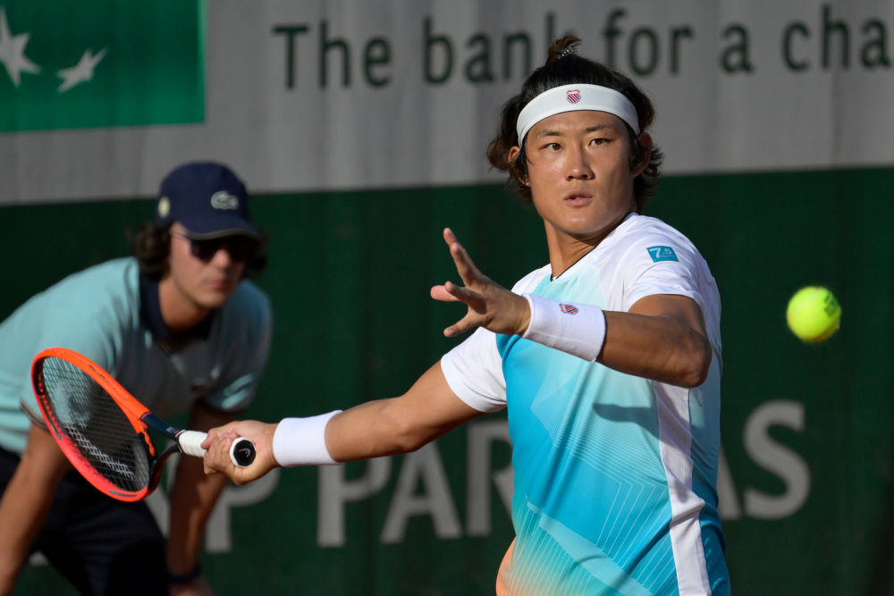 5月29日,张之臻在比赛中回球。新华社发(朱利安·马蒂亚摄)
