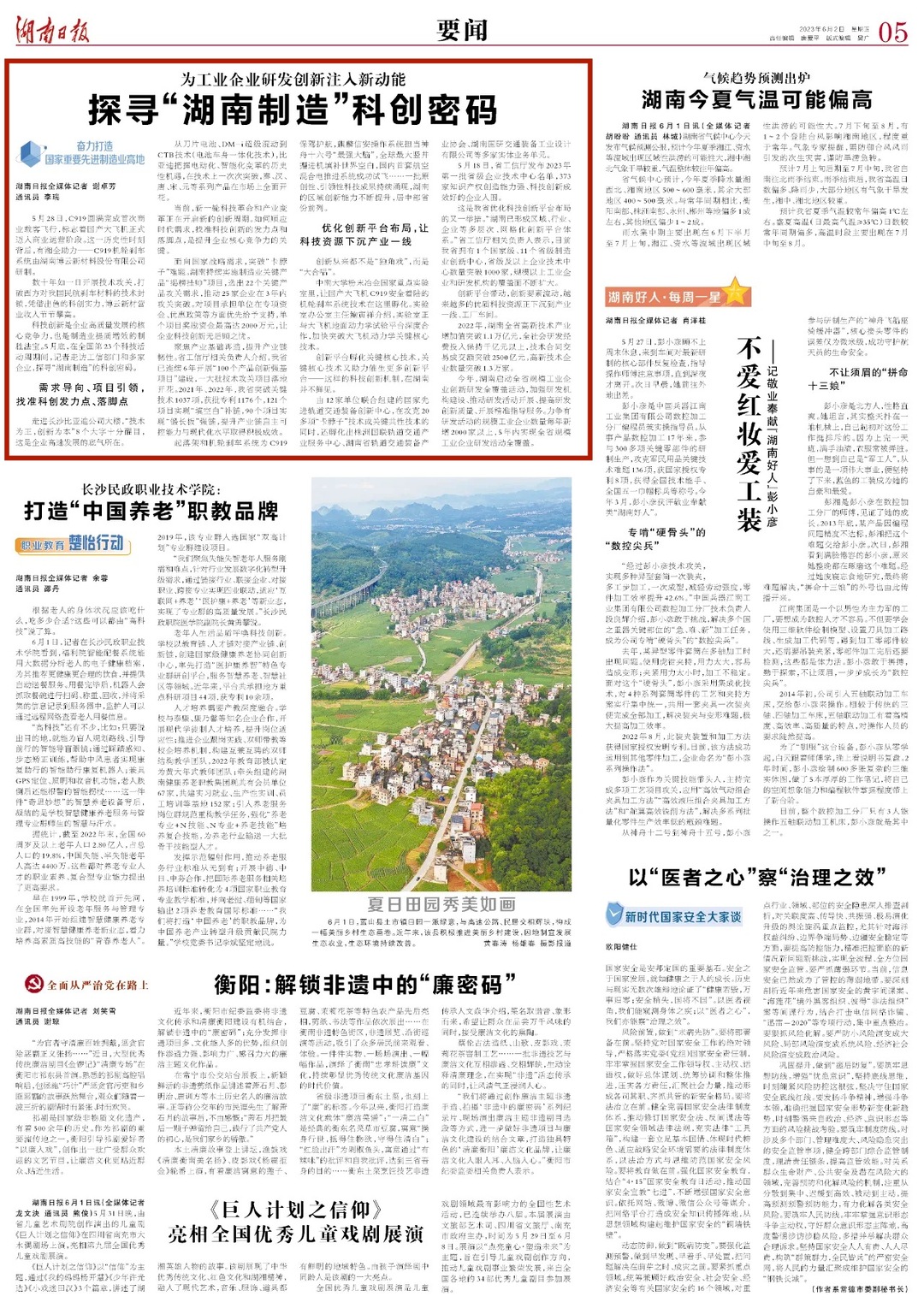 科技创新是企业高质量发展的核心竞争力,也是制造业提质增效的制胜法宝。5月底,在全国第23个科技活动周期间,记者走访工信部门和多家企业,探寻“湖南制造”的科创密码。
