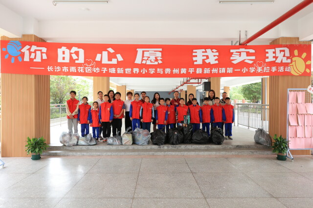 湘黔一家亲,教育手牵手。为发挥长沙市雷锋少年示范学校的模范带头作用,增进湘黔两地友好交流,在今年儿童节到来之际,长沙市雨花区砂子塘新世界小学隆重举行了与贵州黄平镇新州一小手拉手爱心捐赠活动。