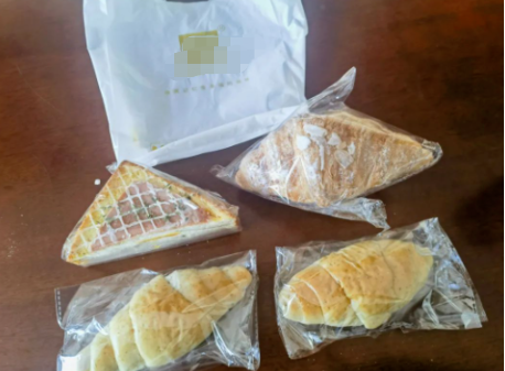 第二天下午,记者根据小程序上指定的取袋时间到店后,店员从柜台给拿了一袋已经打包好的面包。