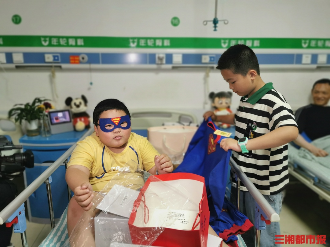 满斯棋在一旁试戴上黄俊哲送的超人眼罩,开始畅想以后的生活。“想到马上可以把脚治好,以后能背着新书包跟朋友们一起去学校,是我这个‘六一’最开心的事。”