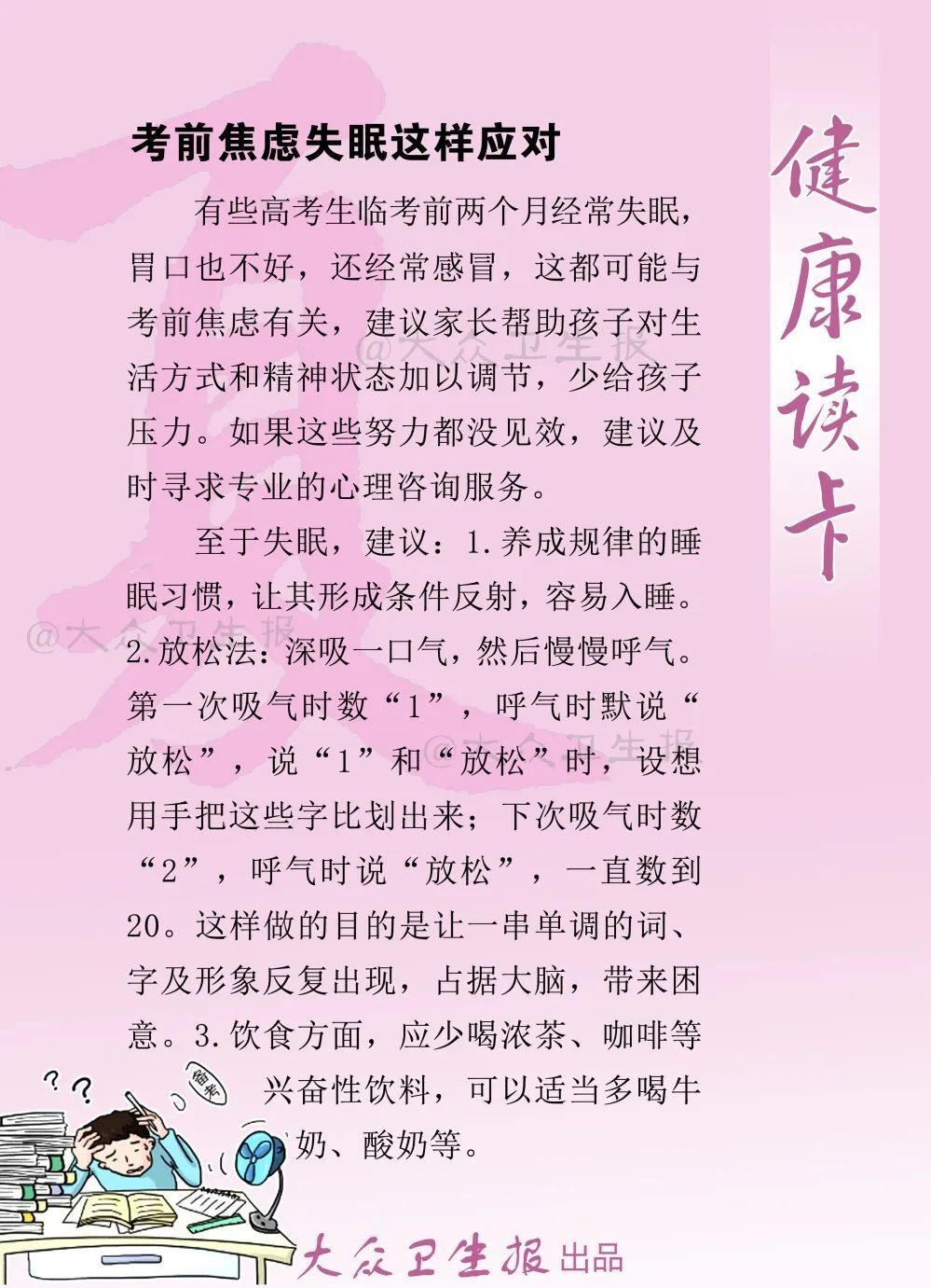 高考孩子要避开饮食误区/考前焦虑失眠这样应对