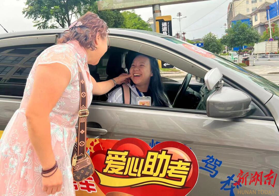 “爱心送考”,准点出发!6月7日6时30分,通道侗族自治县城东清华卓煌园,考生开心地坐上爱心车前往考点。当天是高考首日,该县“爱心送考”志愿者与往年一样,按照各自担负的送考路线准点接送考生,提供温暖服务。 (吴祥淼 陈俊宇 摄)