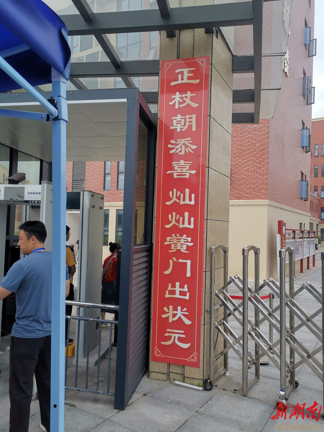 今年是怀化市一中办学80周年,也是搬新校址后迎来第一年高考。学校大门口的火红对联,字里行间满是对高考学子的祝福。(李夏涛 摄)