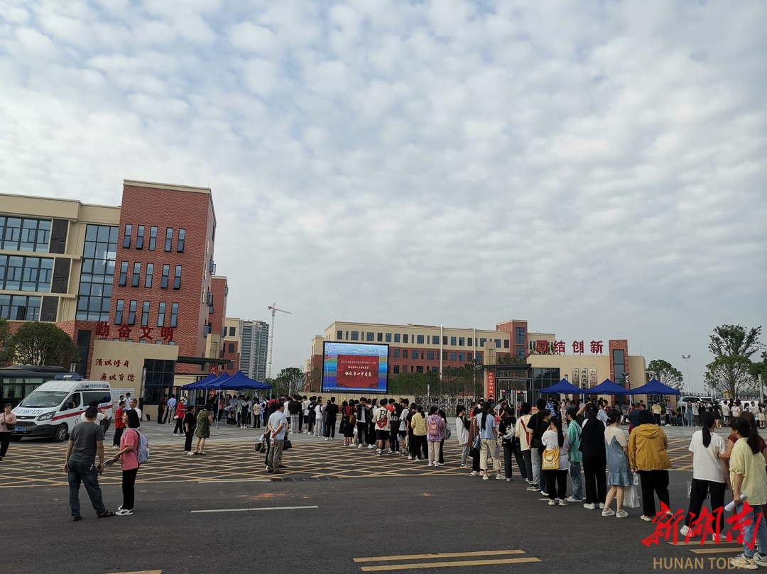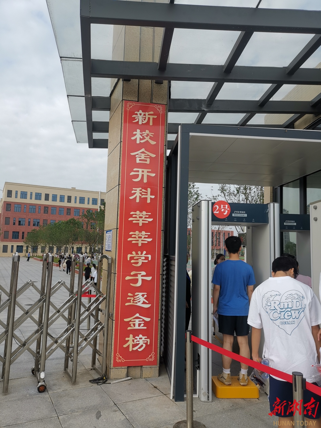 7时50分,怀化市一中考点,考生排队等待进入校园。(李夏涛 摄)
