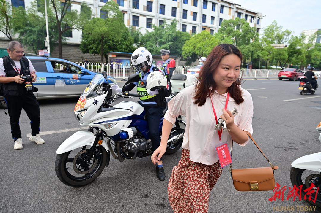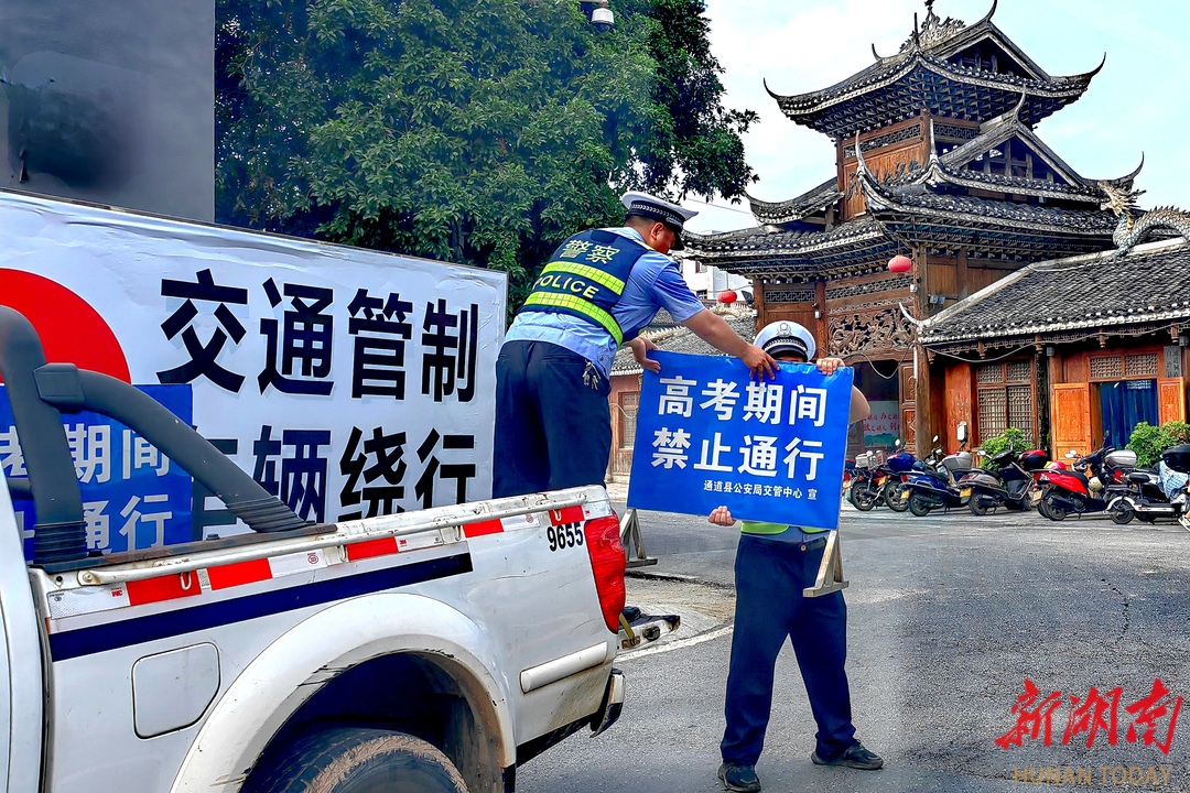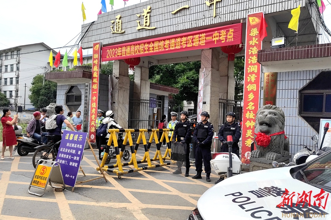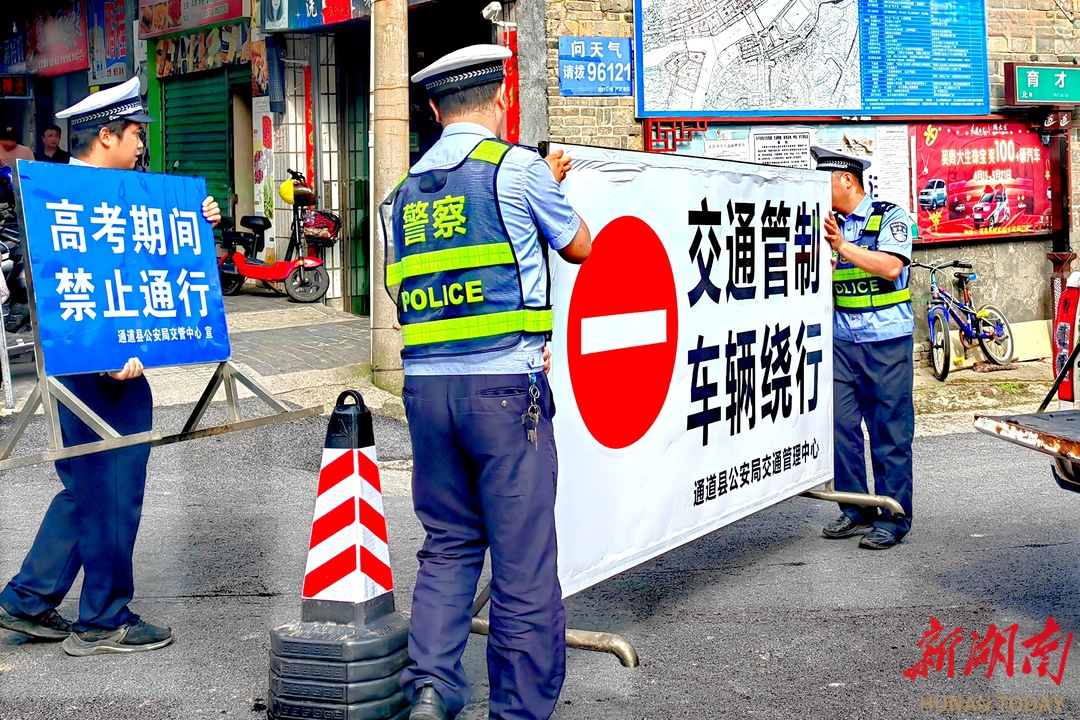 6月7日,高考第一天,通道侗族自治县公安局交通管理中心全警上路,开启护考模式。交警在考点周围进行交通管制,努力营造道路安全有序的环境,确保考生及接送人员顺利通行,为学子梦想护航。(石猛雷 宋玲玲 摄)