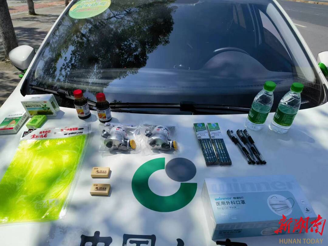 在怀化市第一中学考点,中国人寿财产保险股份有限公司怀化市中心支公司组织青年志愿者10余人及5台爱心送考车辆,在考场外维护交通秩序,为高考学子"爱心送考"。在“爱心送考”车里还储备了风油精、藿香正气水、矿泉水等防暑物资,2B铅笔,橡皮擦、削笔刀等考试用品进行应急物资。(肖鹏 苏爽 曾惠 摄)
