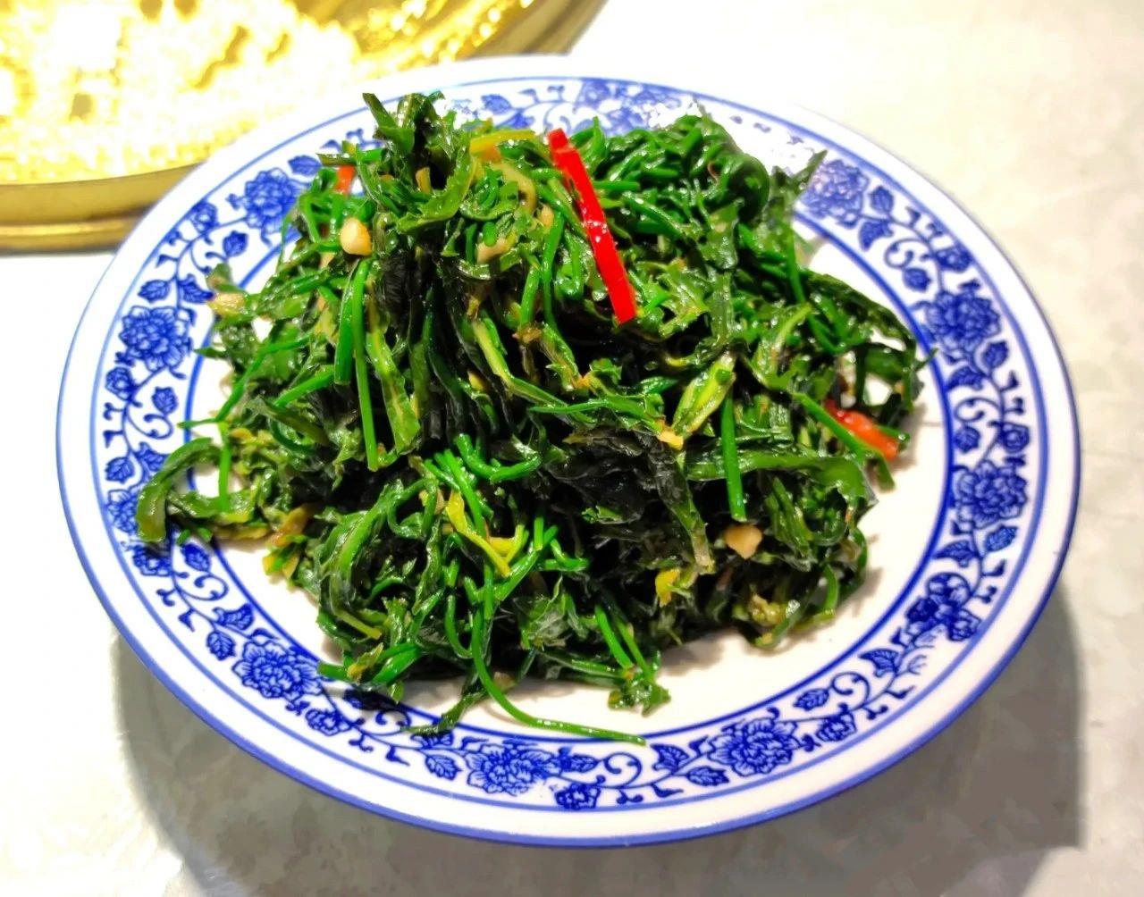 凉拌苦菜外表看起来小清新,但入口充满苦味。苦菜有很多好处,含多种营养成分,在河套地区的田间地头随处可见,是纯天然的绿色食品。