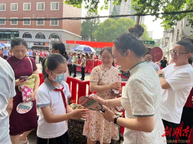 在长沙市一中考点外,还有“小小志愿者”的身影呢!