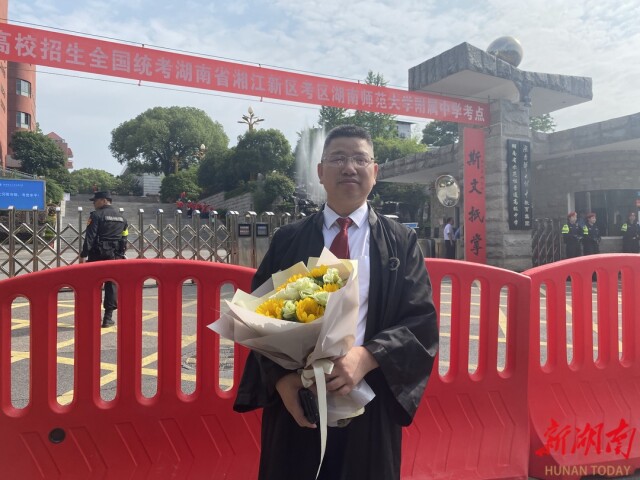 再看这位湖南师大附中考点门口这位帅气的爸爸,