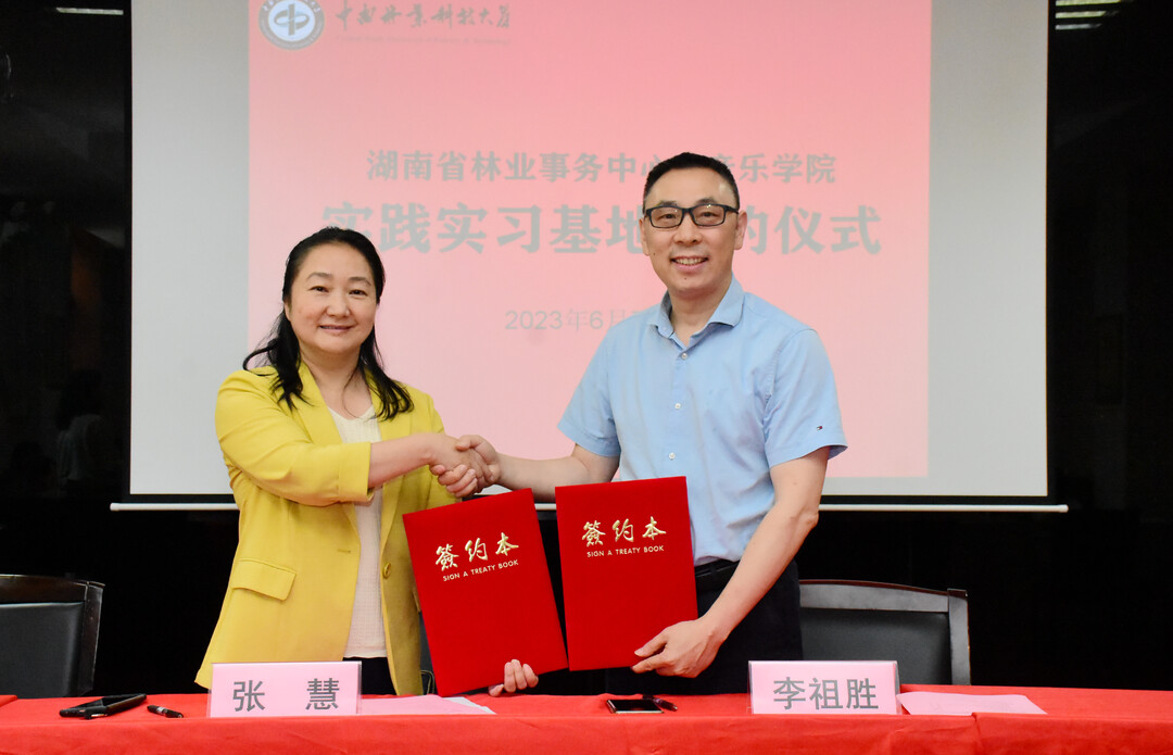湖南省林业事务中心主任张慧和中南林业科技大学音乐学院院长李祖胜代表双方共同签署了共建实践实习基地协议书,通过搭建教学实习平台,将实现资源共享、互惠双赢、协同发展,合作共建。