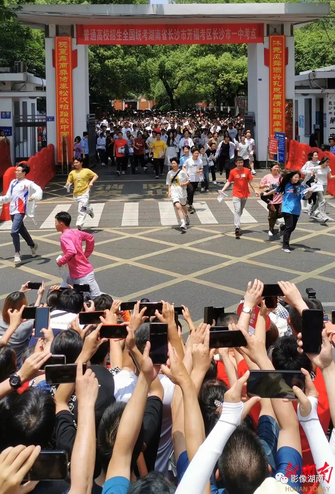 长沙市一中考点,考生飞奔出考场。刘松柏 摄