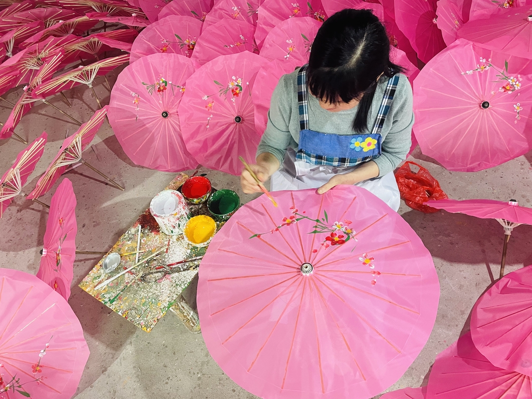 ▲石鼓油纸伞是我国制伞工艺三大流派之一,最早可追溯到明朝。