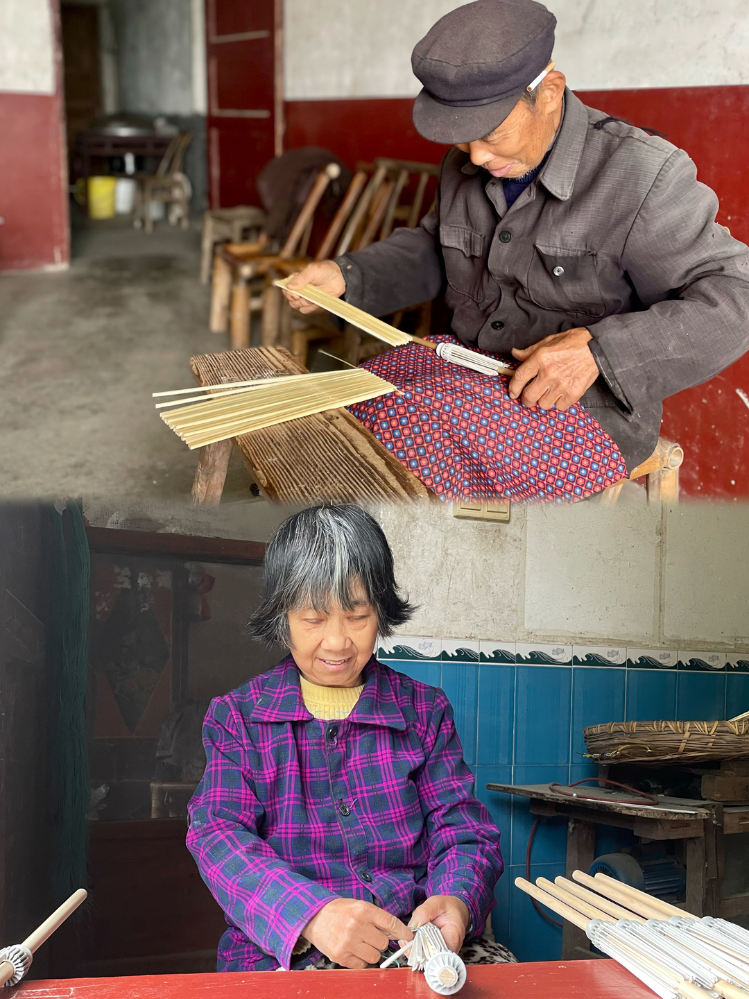 “我们镇上,只要屋场前摆着竹子,就知道这户人家在做油纸伞。”初夏的安乐村,绿意正浓,周乐熟悉地穿梭在各家农户,用湘潭方言同老人们打着招呼。老人们笑着和周乐寒暄,手上功夫不停,昌山的楠竹,经他们的一道道手工工序,再到周汉宇的工厂里组装,然后通过周乐的拼多多店铺等线上平台,销往全国。