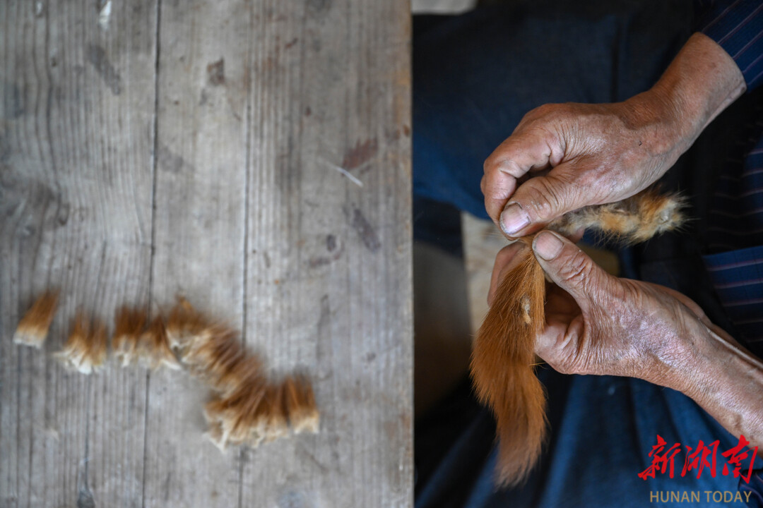 随着书写方式和工具的变化,湘笔渐渐衰落。因手工制笔过程单调、枯燥、费时,如今制作毛笔的师傅越来越少,传统制笔手艺一度面临失传的困境,易星亮承担起传承毛笔制作的重担。