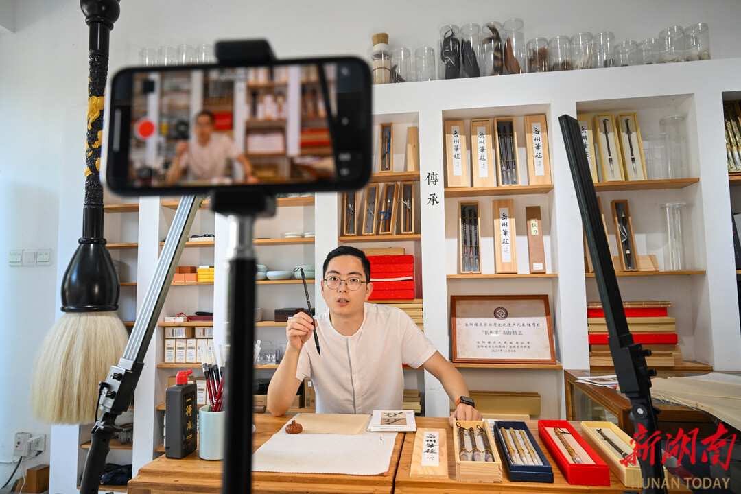 今年4月,“岳州笔制作技艺”入选岳阳市市级非遗项目,易宇航将制笔过程拍摄成视频短片进行网络传播,开展线上线下互动体验,并通过电商平台,将毛笔卖到了国外,为传统毛笔插上互联网翅膀。