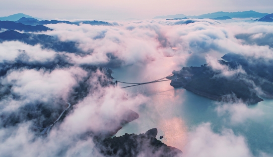 雨后的攸县酒仙湖,云雾缭绕,宛如仙境。攸县宣传部供图