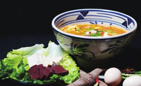 翻滚的稻浪,被做成鲜辣的攸县米粉、切面。攸县烧汤粉,是湖南江湖米粉中一个独特的存在,高汤现煮,一人一锅,在汤里加入瘦肉、豆腐、猪血、青菜,再卧一个煎蛋,然后将汤倒入煮好的细粉里,主打就是一个鲜,韧弹爽滑、回味绵长,不过有点烫嘴。