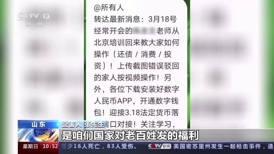 受害人 张先生:群里头有老师教给你理财,他说现在有一个千载难逢的机会,就是在手机上下载一个叫“数字信用”的App,老师说咱们国家现在开始进入数字人民币时代,咱们以后消费都得用数字人民币,他说这个“数字信用”App就跟支付宝、微信一样,能在网上买东西。