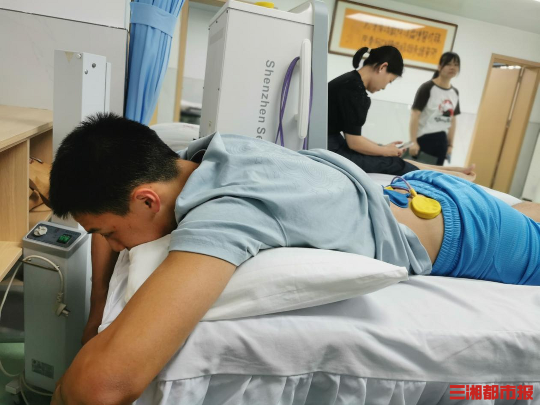 (6月11日,陈智康在湖南省体育专科医院进行腰部理疗。(记者 叶竹 摄))