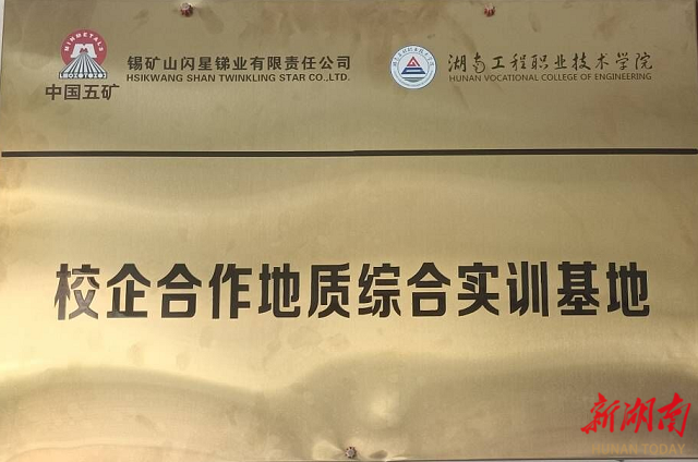 湖南日报·新湖南客户端6月12日讯(通讯员 于润水 李勇)6月9日,湖南工程职业技术学院与锡矿山闪星锑业有限责任公司合作共建地质综合实训基地授牌仪式在冷水江市锡矿山举行。