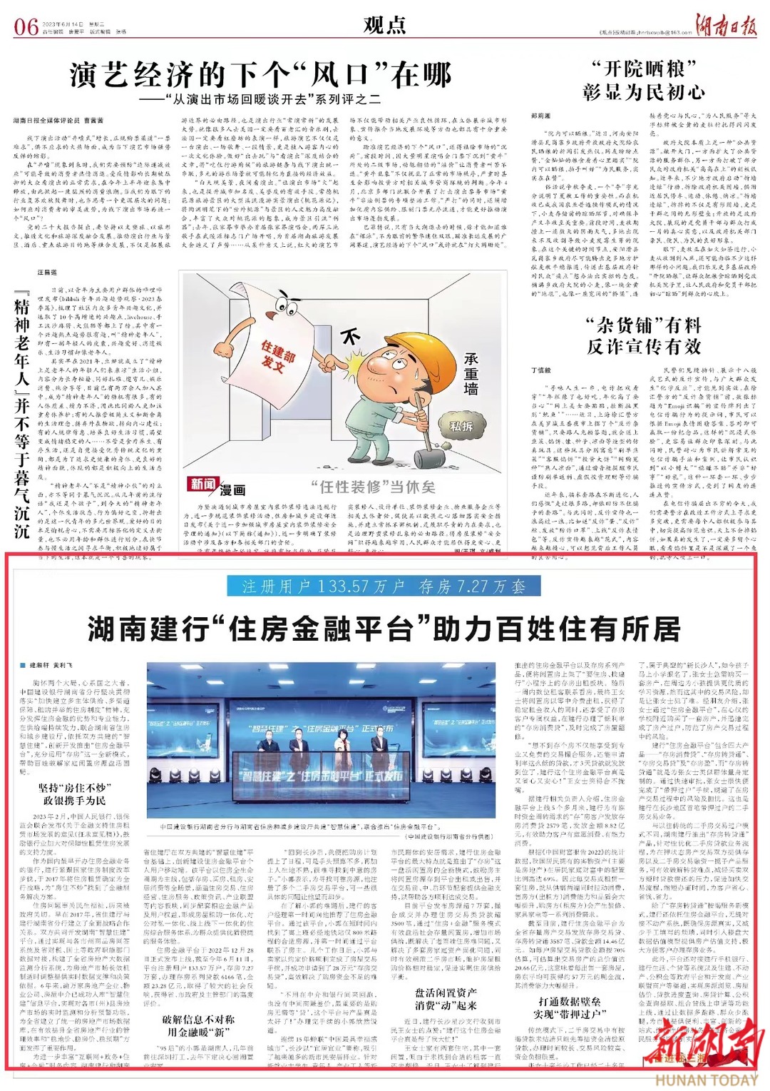 胸怀两个大局,心系国之大者,中国建设银行湖南省分行坚决贯彻落实“加快建立多主体供给、多渠道保障、租购并举的住房制度”精神,充分发挥住房金融的优势和专业能力,在供给端持续发力,联合湖南省住房和城乡建设厅,依托双方共建的“智慧住建”,创新开发推出“住房金融平台”,充分运用“存房”这一全新模式,帮助百姓破解家庭闲置房源盘活困局。