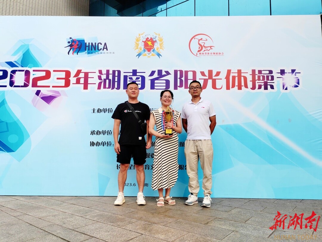 在刚刚闭幕的2023年湖南省阳光体操节上,湖南有色金属职业技术学院代表队在何坤、肖红艳、刘畅3位老师的指导下,斩获本次赛事团体亚军、艺术表演舞团体一等奖,彭朝君同学获得女子单人单项R一等奖,其他队员获得单项二等奖6项,三等奖3项。