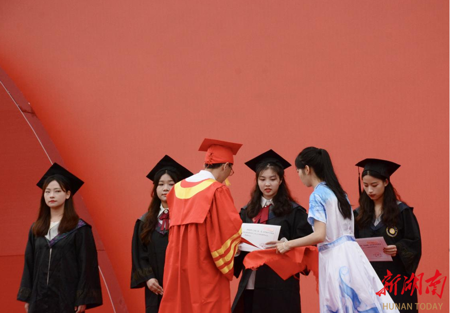 典礼上,校领导宣读2023届本科生优秀毕业生表彰决定和2023届研究生优秀毕业生表彰决定。123名本科生与12名研究生获评“2023届湖南省普通高等学校优秀毕业生”荣誉称号,12名本科生于1名研究生获评“2023届湖南省普通高等学校创新创业优秀毕业生”荣誉称号。