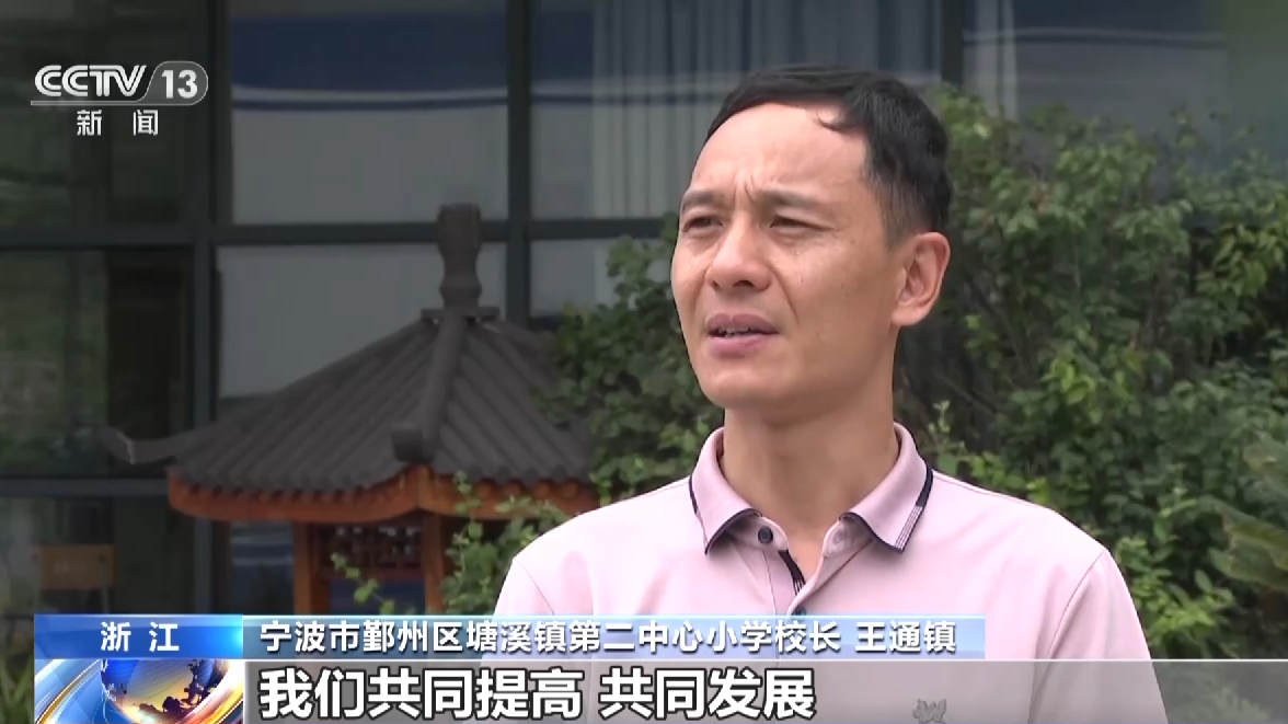 宁波市鄞州区塘溪镇第二中心小学校长 王通镇:我们共同提高、共同发展,通过以城带乡、以优扶弱的教学举措,激发了我们学校的办学活力,促进了农村教育的振兴和教育现代化。