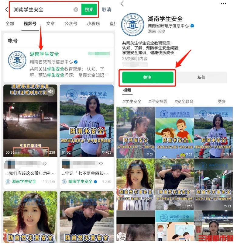 为了防范“AI”换脸诈骗,“湖南学生安全”视频号发布了多个视频,只需在微信首页搜索栏输入“湖南学生安全”,找到“湖南学生安全”视频号,点击进入即可关注,掌握更多防范技能。