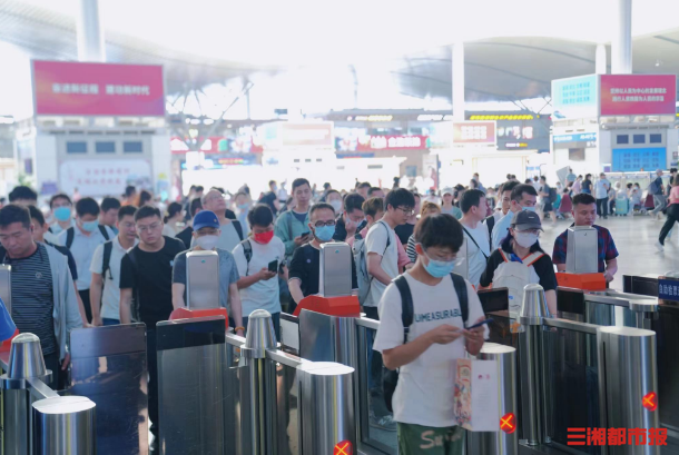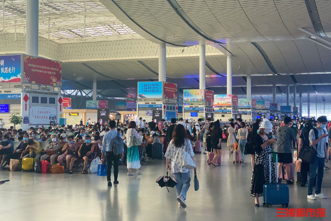 (长沙南站组织旅客有序进站乘车。 盛天昱 摄)