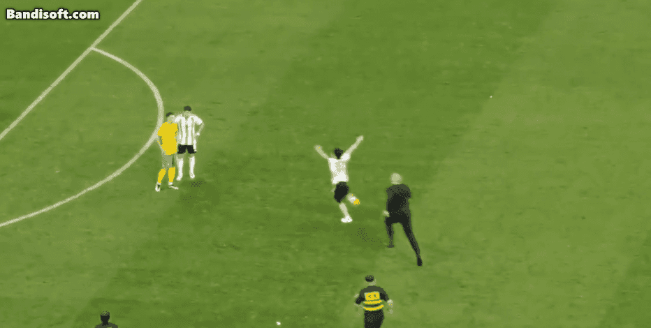 当晚比赛第66分钟,场上出现意外一幕,一名身穿梅西球衣的球迷冲入场内,与多名阿根廷队员击掌,他在场上不停奔跑,倒地后被安保“请”出球场。
