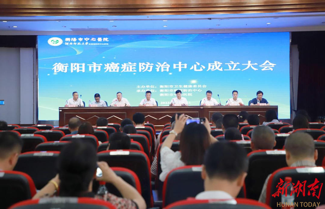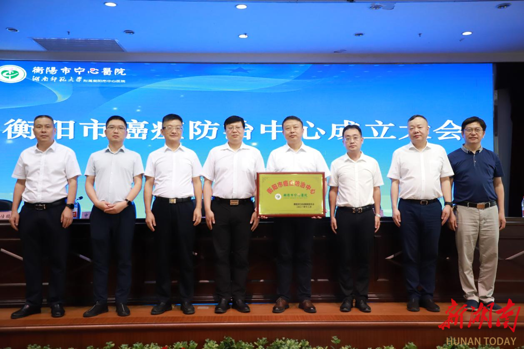 大众卫生报·新湖南客户端6月16日讯(通讯员 王旋)6月16日上午,衡阳市癌症防治中心挂靠市中心医院成立。湖南省肿瘤医院院长、省癌症防治中心主任肖亚洲,衡阳市卫健委副主任、衡阳市疾控局局长李小伟,衡阳市中心医院院长、衡阳市癌症防治中心主任尹军出席成立大会并讲话。李小伟向尹军授牌。衡阳市中心医院党委书记申惠龙主持成立大会。衡阳市中心医院副院长刘小平、李珍发出席会议,各县市区卫健局、疾控中心、相关医疗机构领导和医疗骨干近百人参加会议。