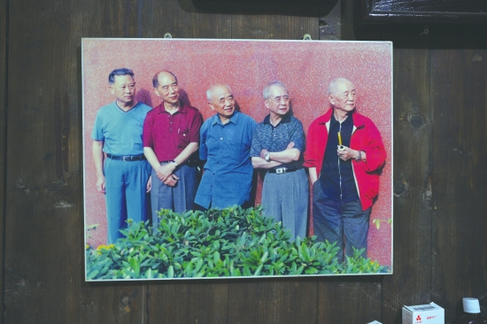 堂屋正堂墙壁上,挂着一张黄永玉的画作。一只大公鸡,是大哥专门给黄永前画的,黄永前属鸡。两侧墙壁也挂满黄永玉老人和其他一些家人的画作,以及家族各类的合照。其中有两张照片比较起眼,一张是黄永玉老人五兄弟的彩色合照,另一张年代更早的合照,照片中间有一位白发老人,那是黄永玉的表叔沈从文。后一张照片的摄影者正是黄永前,拍摄于上个世纪八十年代,那款刚刚出来的相机还是黄永玉送给他的。