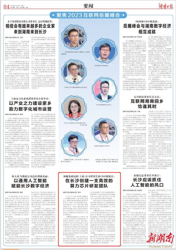 “湖南的领导对产业发展理解很深刻,在长沙生活的幸福感很强。”为了更好地发展,看好长沙产业基础的沐曦决定在长沙投资,创建一支高效的算力芯片研发团队。