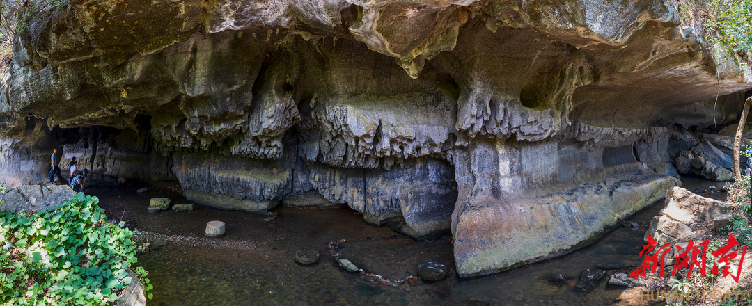 阳华岩位于江华县城东南五公里的竹园寨回山之下,山如斧劈刀削,山顶平坦,外岩自东向西倾斜,形如走廊,岩面向南宽敞,形成3000余平方米的蓬状敞开式岩洞。一股清泉自岩腹流出,沿岩壁西去。洞内阳光充沛,怪石嶙峋,泉水清澈,洞壁依水蜿蜒,光洁平整。这样的胜迹奇景,激发了元结赋诗作铭的雅兴,由此诞生出不朽名篇《阳华岩铭》。
