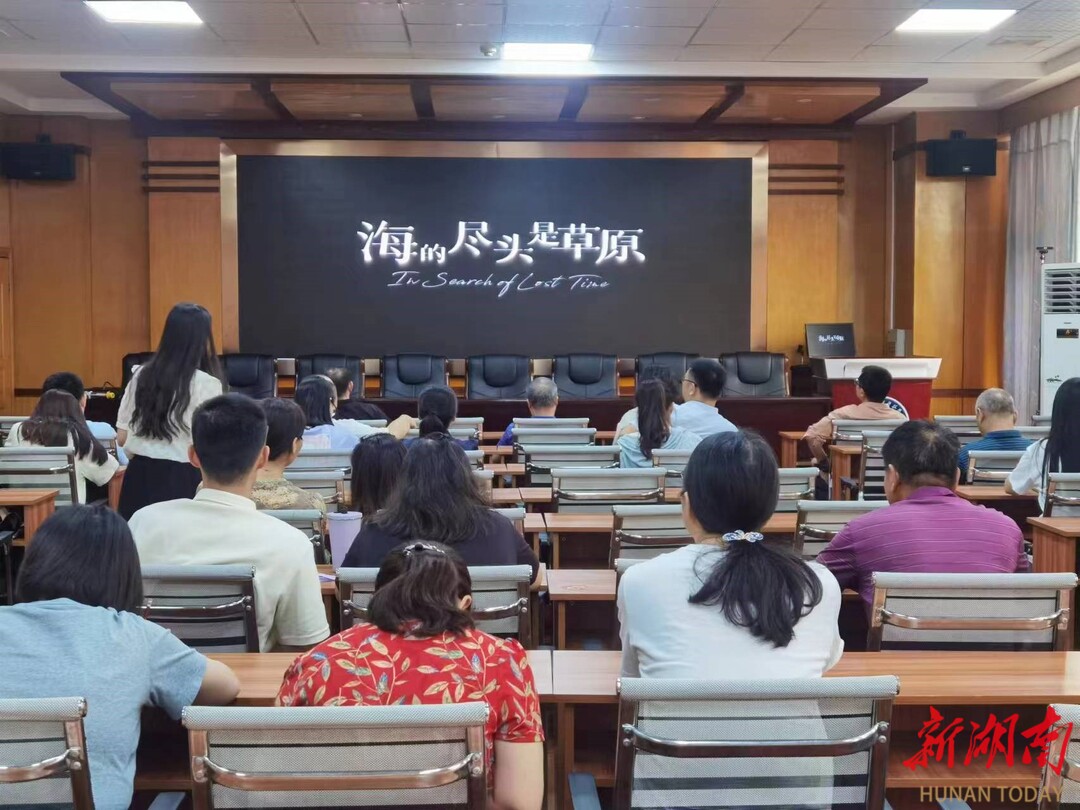 6月20日,湖南工业大学科技学院师生在科技大楼315会议室集中观看电影《海的尽头是草原》。科技学院党委书记唐文武和近100名师生一同观看影片。