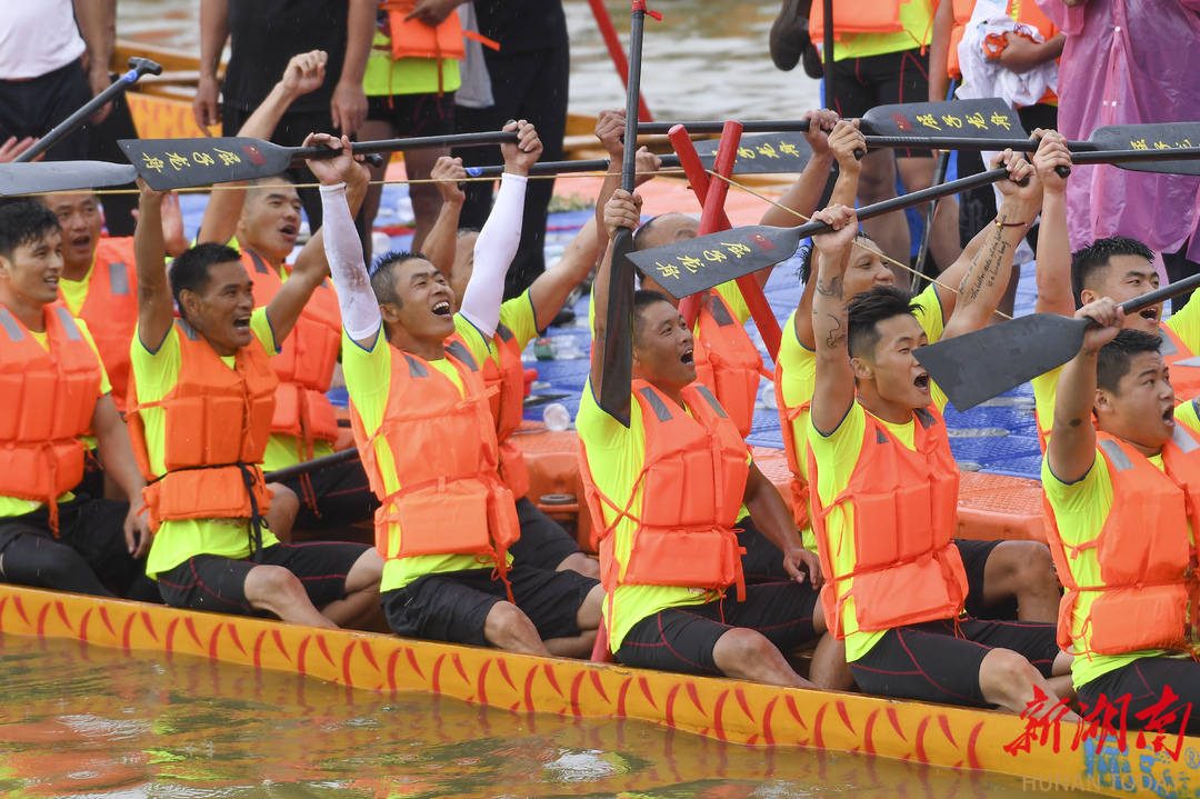 6月21日,汨罗江国际龙舟邀请赛传统组让选手收获纯粹的快乐。湖南日报·新湖南客户端记者 辜鹏博 摄