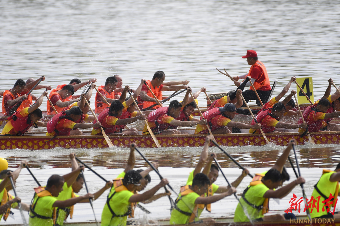 6月21日,汨罗江国际龙舟邀请赛国内组竞争十分激烈。湖南日报·新湖南客户端记者 辜鹏博 摄