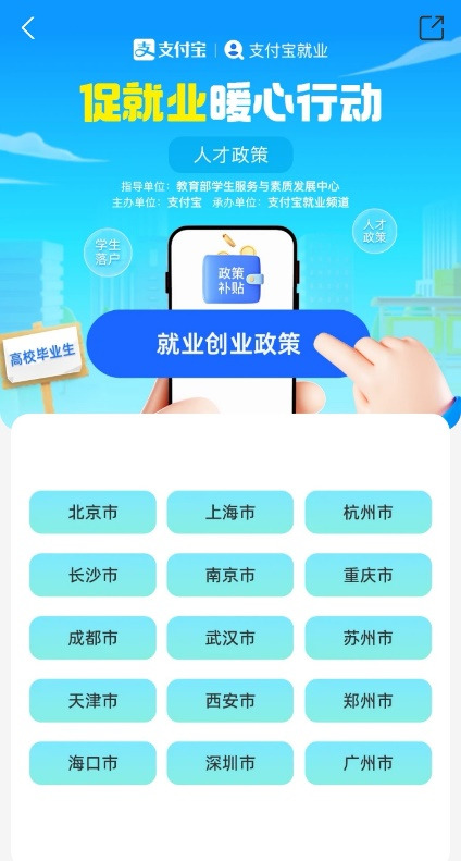 支付宝上能找工作!6月20日,在浙江省,支付宝平台联合多地政府机构、招聘机构等共同发起为期41天的“樟子松计划”,帮助高校毕业生找工作。记者注意到,湖南省多个城市已接通计划,湖南高校毕业生找工作又增添了一条渠道。