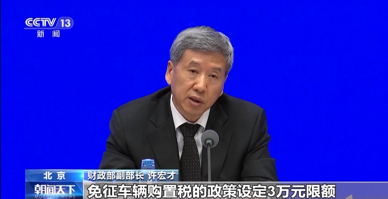 财政部副部长 许宏才:对享受新能源汽车免征车辆购置税的政策设定为3万元限额,对于享受新能源汽车减半征收车辆购置税政策设定1.5万元限额。实质上就是售价在30万元及30万元以下的车辆不受限额影响,30万元以上的车辆只能按照最高限额享受减免税优惠,超出30万元以上的部分需要按照规定税率缴纳车辆购置税。