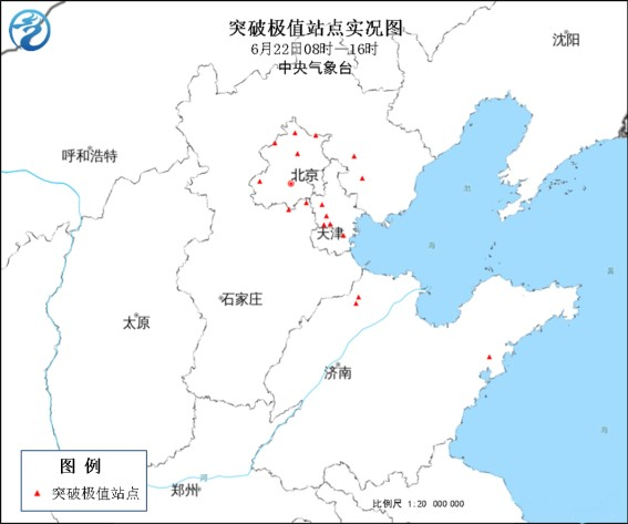 气象监测显示,今天(6月22日)8时至16时,京津冀、山东、河南中北部、安徽北部、江苏北部以及内蒙古西部、新疆东部和南疆盆地等地出现35℃以上的高温天气,其中,北京、天津、河北中部、山东北部等地气温上升迅猛,最高气温升至40℃以上,北京怀柔和天津滨海局地达41.8℃。北京、天津、河北、山东共17个国家气象观测站最高气温突破历史极值。