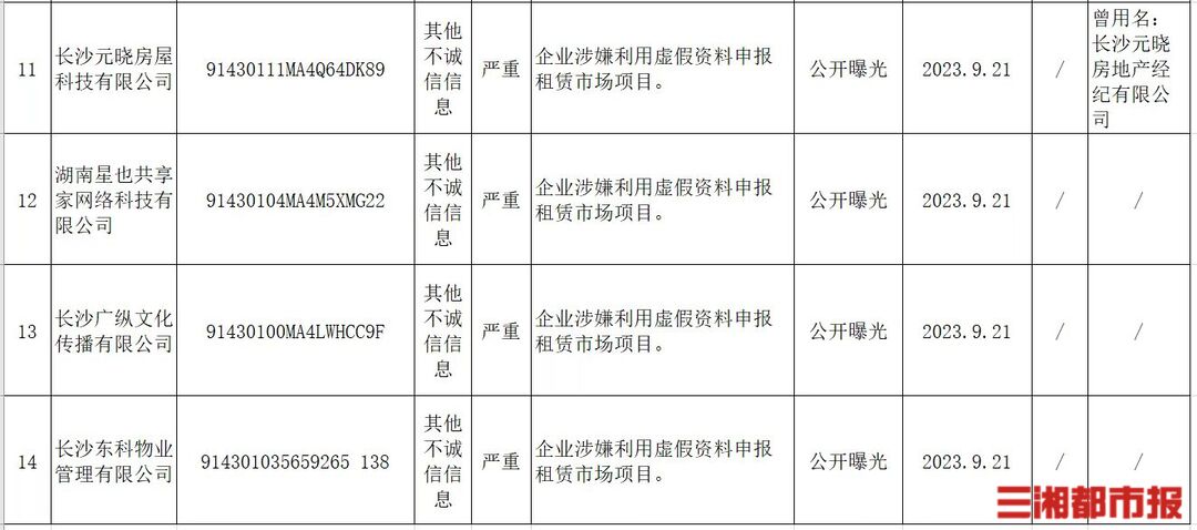 此外,长沙市创联房地产经纪有限公司、湖南蓝图房地产有限公司、长沙兴昌房地产开发有限公司、湖南俊昶房地产经纪有限公司、湖南合熙房地产服务有限公司、长沙元晓房屋科技有限公司、长沙广纵文化传播有限公司等公司均被曝光。