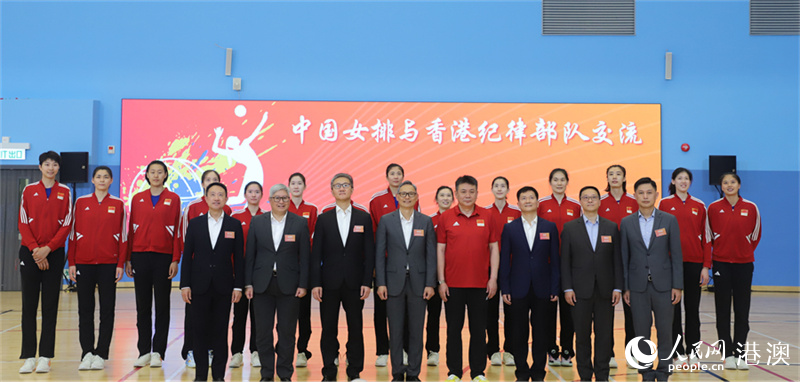 人民网香港6月21日电 (严小晶、实习生唐晨)中国女排结束世界女排联赛中国香港站的比赛后,继续留港交流访问。21日下午,国家队与香港特区五支纪律部队人员组成的联队展开交流并进行友谊赛,现场气氛热烈,掌声阵阵,欢呼喝彩声不断。