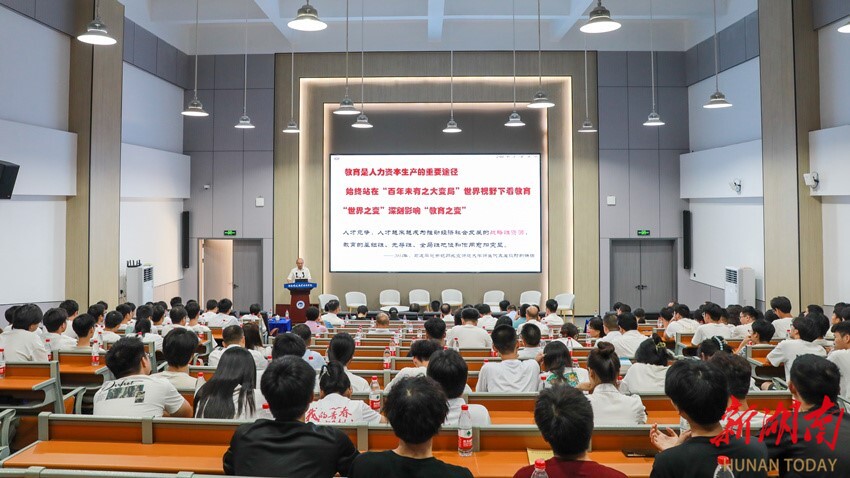 “教育是人力资本生产的重要途径,我们要始终站在‘百年未有之大变局’世界视野下看教育,‘世界之变’深刻影响‘教育之变’,高质量发展关键要看人才,制造业高质量发展关键要看技术技能型人才……”李新生从国际化的视野、多元化的角度出发,围绕工业革命与学校职业教育发展、技术技能型人力资本高质量生产、职业院校高质量人才的核心素养三大板块进行详尽阐述。李新生提出,根据现代产业集群企业的发展需求,制造业技术技能型人才需要具备六大核心素养:包括全面的职业素质和良好的团队精神,面对未来科技发展和产业发展的基础知识,追求卓越的终身学习能力,高超的工艺或操作技能,国际视野并能够紧跟国际产业发展趋势,以及较强的创新意识和创新能力。针对“株洲如何培养高质量技术技能型人才、服务制造业高质量发展”这一课题,李新生分享了自己的思考与见解。譬如根据所需的核心素养来制定人才培养方案、构建课程体系、配置教育教学资源,组建市域行业产教联合共同体,大力推进产教融合型企业建设、提升企业参与职业教育办学积极性等。聆听完报告后,同学们纷纷表示,李教授的报告与时俱进、主题鲜明、立意深远、内涵丰富,引人深思,让人受益良多。